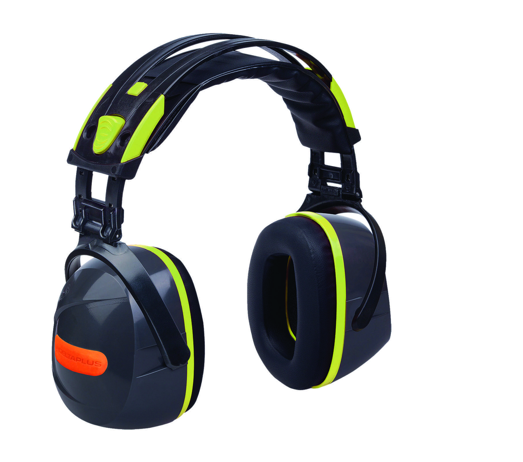 Casque antibruit avec coquilles ABS. Coussinets rembourrés en mousse synthétique. Double arceau plastique (POM), réglable en hauteur, avec renfort souple et aéré pour un meilleur confort.