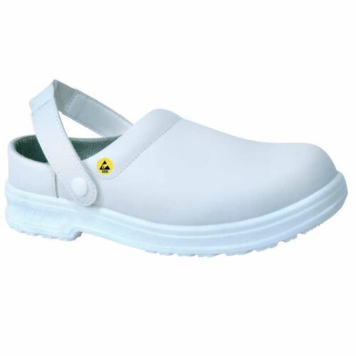 Chaussure avec tige microfibre blanc résistante à l’eau. Doublure en polyamide respirante. Embout : Acier. Semelle de propreté en polyuréthane souple, respirante et antibactérienne. Semelle d’usure PU souple.